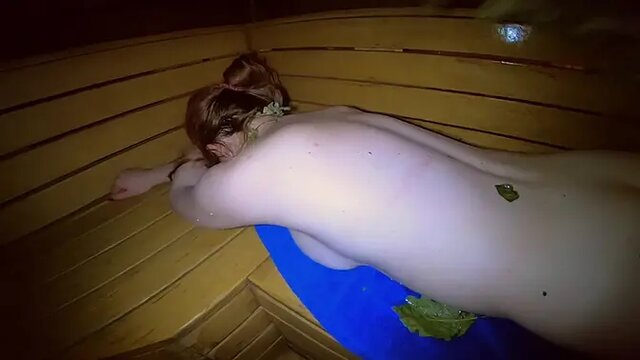 This dirty ginger teen shows off her big boobs and invites guys to post in her wet, horny pussy. She finds herself in a public sauna, where she gets lucky with a mature MILF. The milf fucks her hard and cums inside, leaving her creampied.