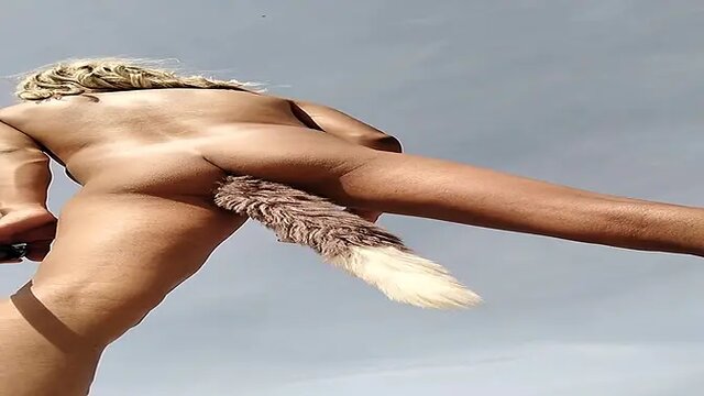 Latina Ladyboy strips and shows off big ass and anal plug in public