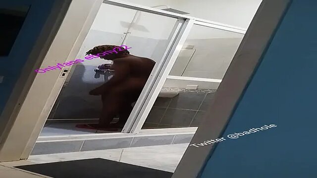 A busty babe stands in the shower, playing with her phone while teasingly showing off her big as boobs. The water cascades down her body, making them glisten. She can't help but touch herself while she's on call.